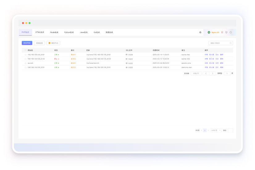 快速創建網站,集成PHP/Java/Python/Node/Go等網站運行環境